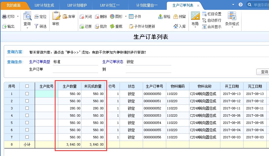 3.下達(dá)生產(chǎn)完成后,相應(yīng)彈出“生產(chǎn)訂單自動生成”界面,可看到下達(dá)的生產(chǎn)計劃